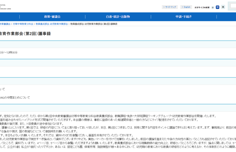 ①要約 今回の第2回幼児教育作業部会では、幼稚園教諭等の採用確保が主な議題となりました。前回扱った研修の議論も振り返られ、幼児教育センターを軸に、大学・自治体・園・関係団体が連携して研修や相談支援を進める方向性が示されま…